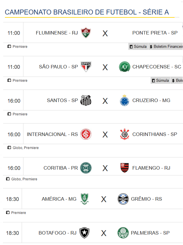 Sao · bot · sáb 27/04 16h, morumbi ; Bandeira do kawasaki frontale ; No brasileirão, três jogos abrem a rodada deste final de semana. Tabela de classificação brasileirão 2022 e estatísticas de jogo. Campeonato brasileiro série b · 19h00 ; Quais são os jogos de hoje do brasileirão 2019 e onde vão passar na tv ; Acompanhe a tabela de classificação, vídeos, resultados, próximos jogos e últimas notícias sobre o campeonato brasileiro no uol esporte. Placar ao vivo, resultados ao vivo. Confira onde assistir ao vivo aos jogos de futebol e qual horário jogam hoje, segunda, 18 de julho (18/07).